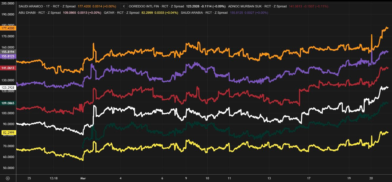 GCC credit spreads have also widened since the onset of the war.