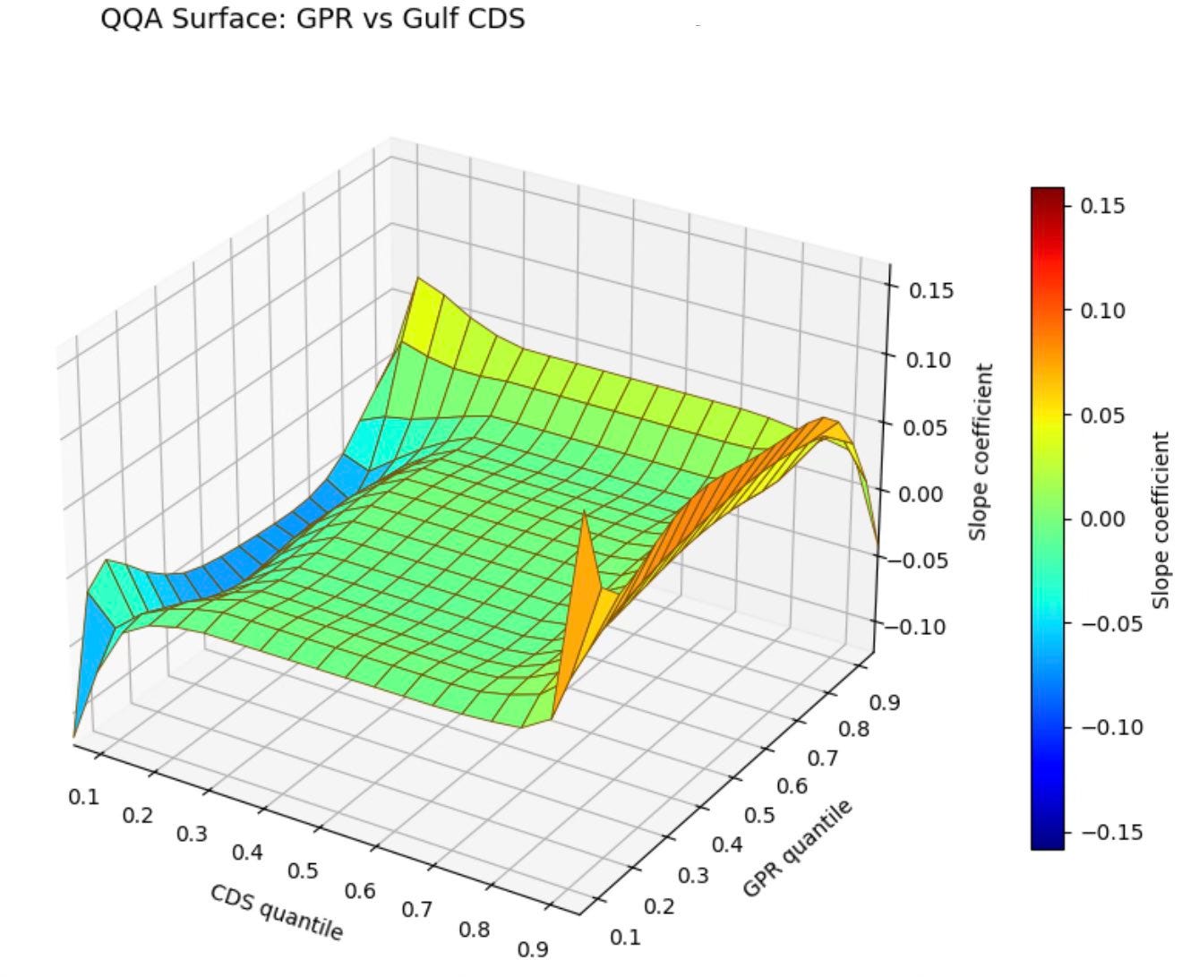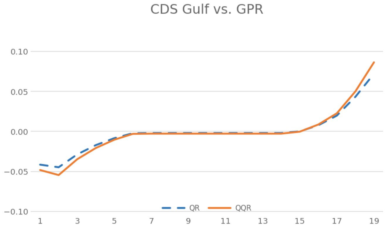 QQA shows geopolitical risk impacts Gulf CDS (Bahrain + Saudi+Kuwait+UAE+Qatar) only in stress regimes: little effect in normal times, but strong, positive effects when both GPR and spreads are high. Risk transmission is nonlinear, asymmetric, and tail-driven.