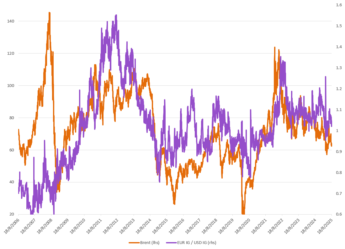 Outside of the Middle East we are seeing some vulnerability specifically in Europe. Europe is an energy importer relying on both oil and natural gas for consumption and industrial production. United States is an oil and gas producer and is much more insulated from rising prices compared to Europe. With the rise in energy prices EUR credit could underperform USD credit.
